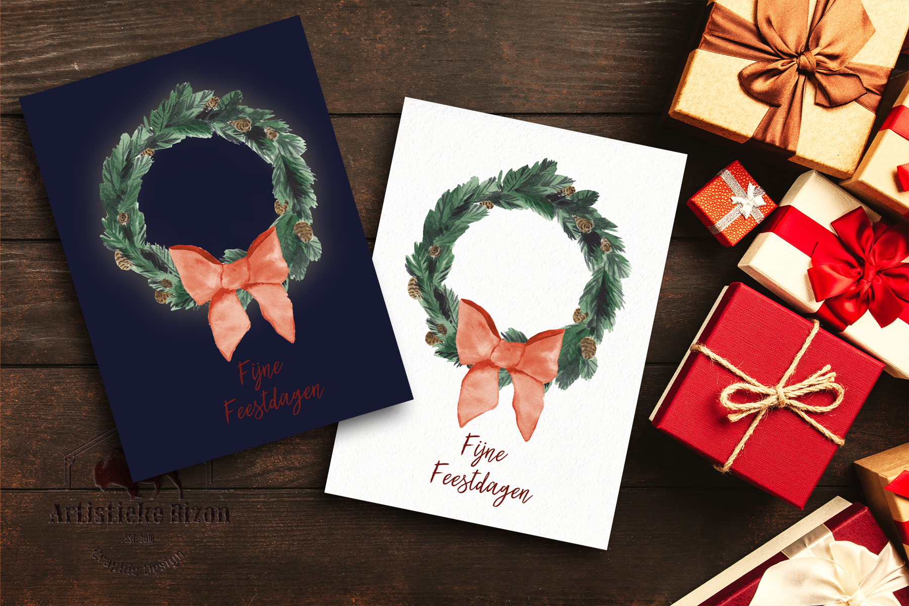 Left (Blue card): Finalised card by request of customer. Right (White card): Original design.