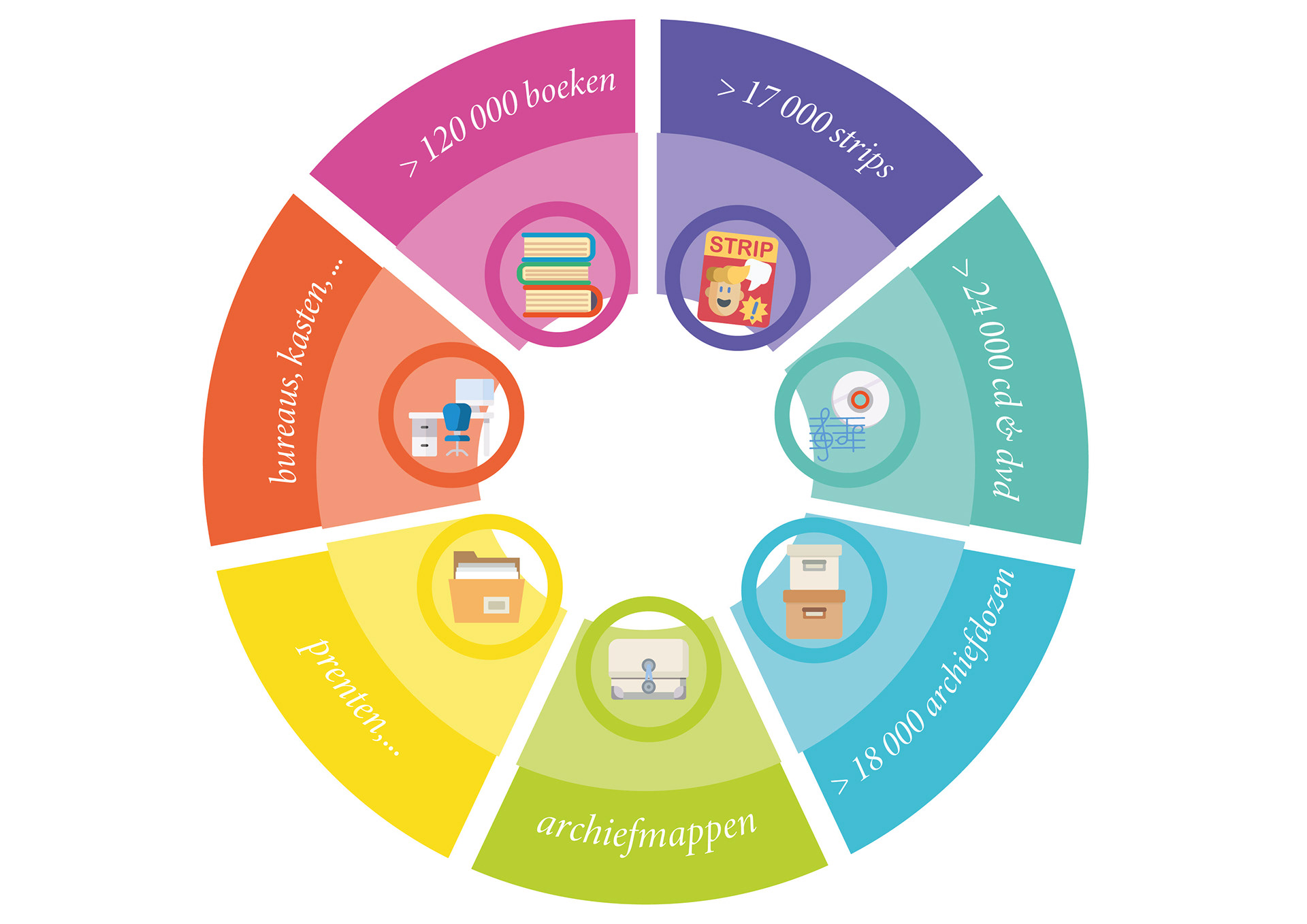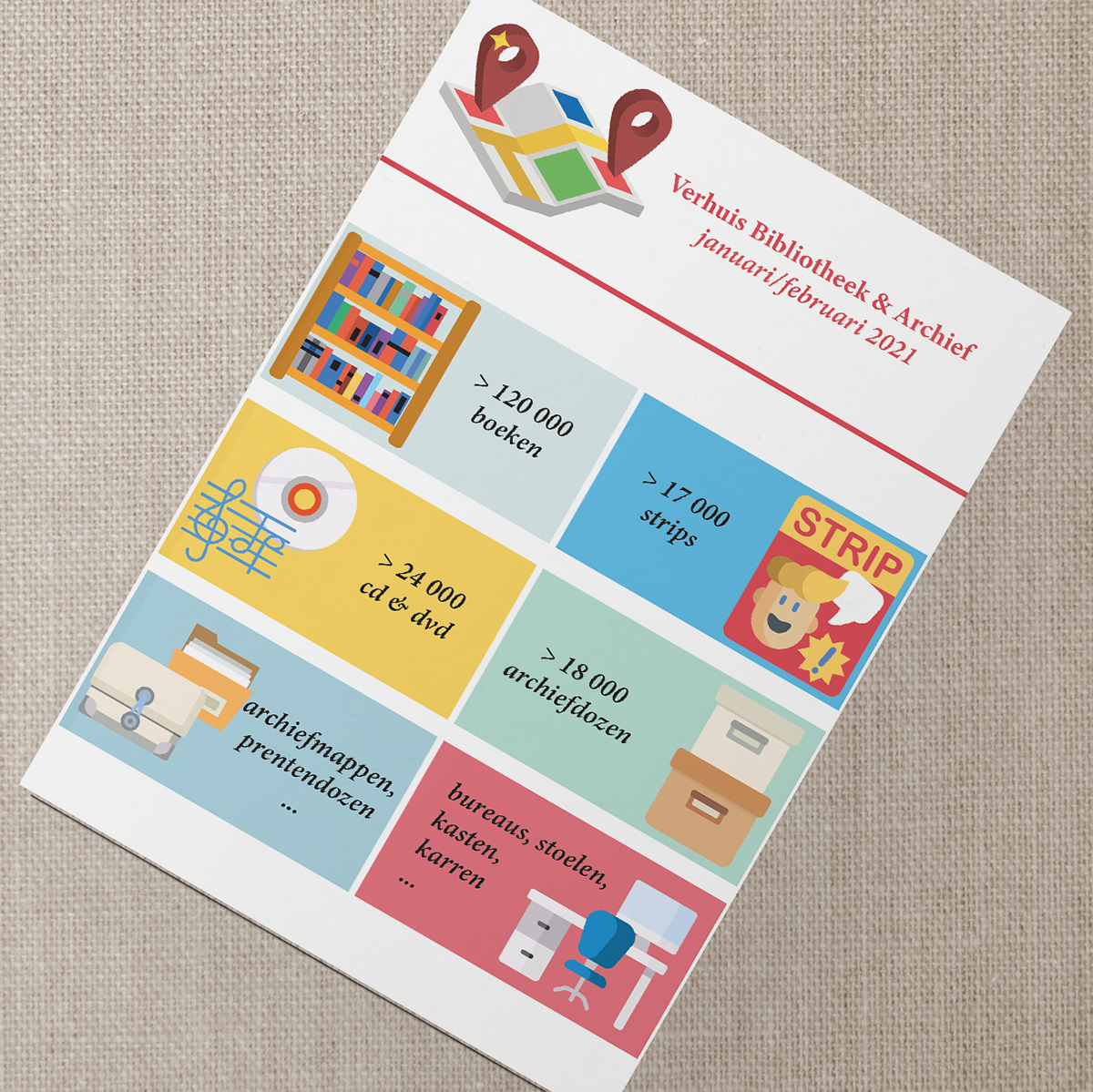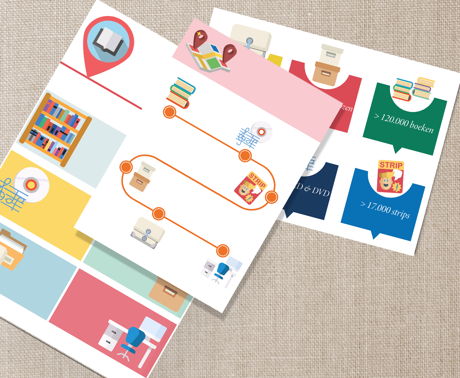 Infographic and icons for local city library.